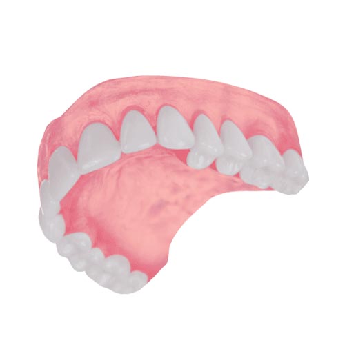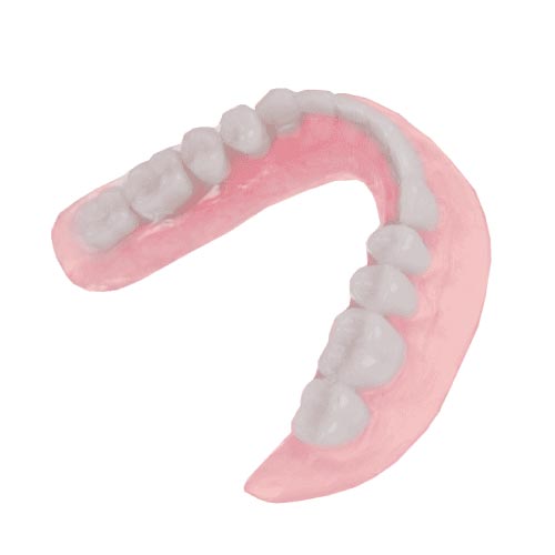 Premium Dentures can always be upgraded with porcelain or custom multi-layered composite teeth, which contain a high degree of hardness, density, resistance and shade stability. A premium multi-layered composite tooth is highly aesthetic and dramatically improves the look and wear of a denture.