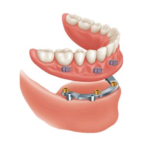 Our Bar Overdentures are fabricated by using CAD/CAM precision milled titanium bars or cast metal hader bars using attachments. The advantage with Bar Overdentures is that it distributes occlusal loads more evenly across all implants. Bar Overdentures are ideal for patients with a heavy bite or when the implants have been placed in softer bone. Patients have less or no sore spots with implant retained Overdentures.